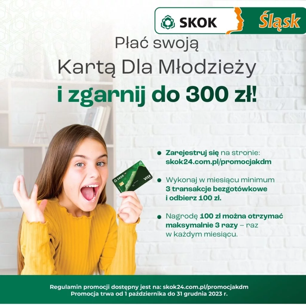 - zarejestruj swoją Kartę dla Młodzieży na stronie skok24.com.pl/promocjakdm